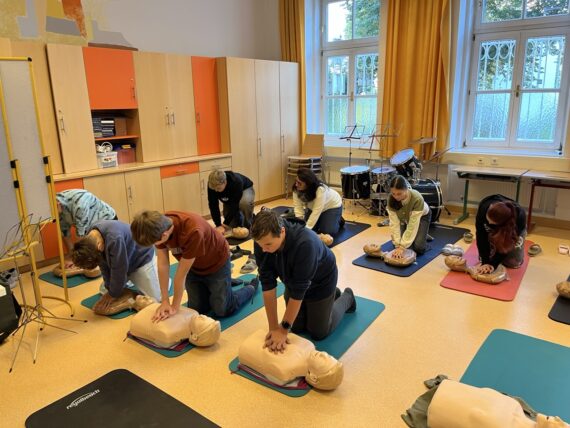 Anlässlich des Wiederbelebungstages haben wir uns aktiv an der Initiative „Schüler retten Leben“ beteiligt und eine Übungsstation für unsere Schüler*innen (Mittelschule) eingerichtet.