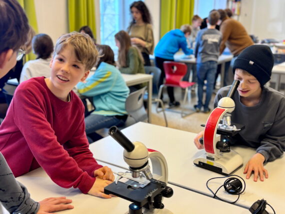 Nachdem wir uns in den vergangenen Wochen intensiv mit der Zellbiologie beschäftigt und unseren Mikroskopierführerschein erfolgreich absolviert hatten, durften wir zum Abschluss gemeinsam mit ORG-SchülerInnen unter Anleitung von Fr. Prof. Schnaitl im Biologiesaal mikroskopieren.