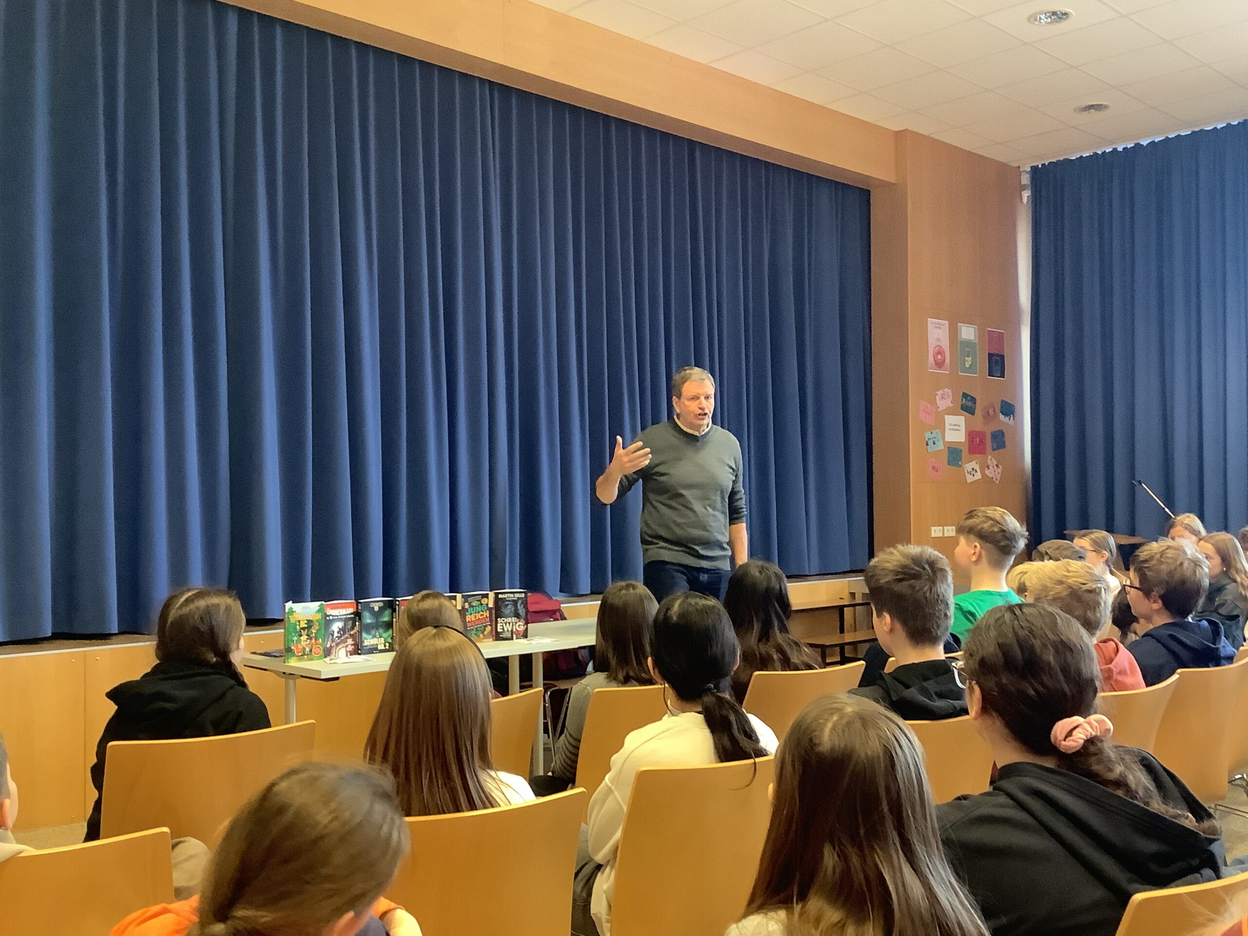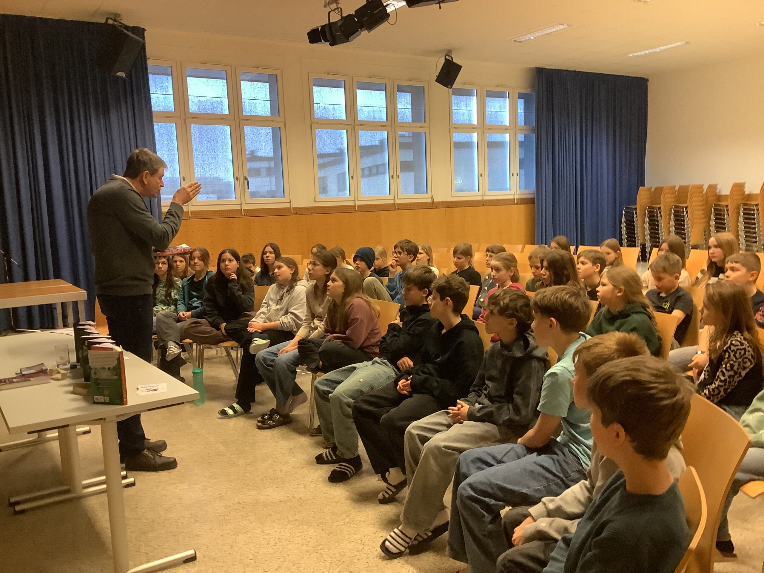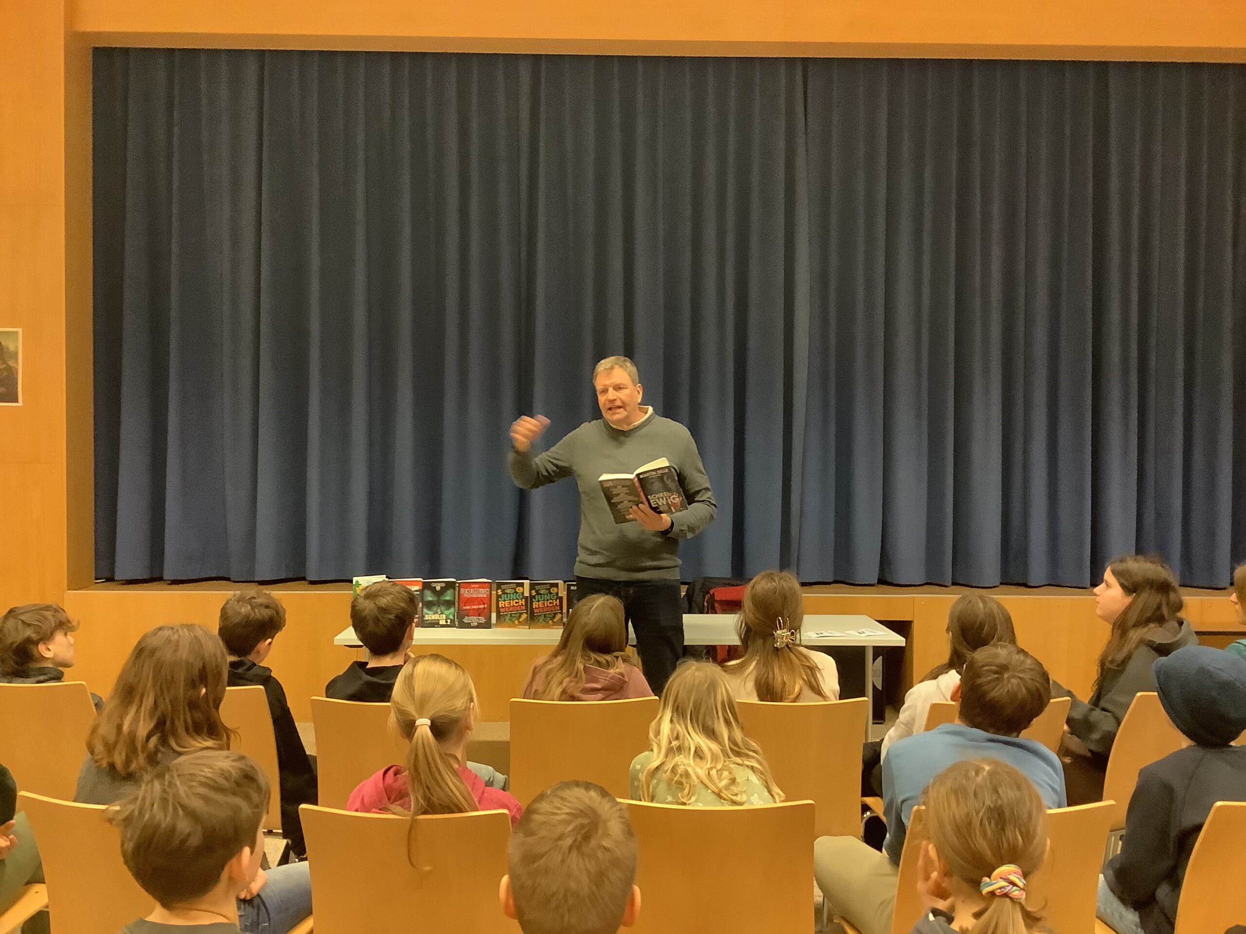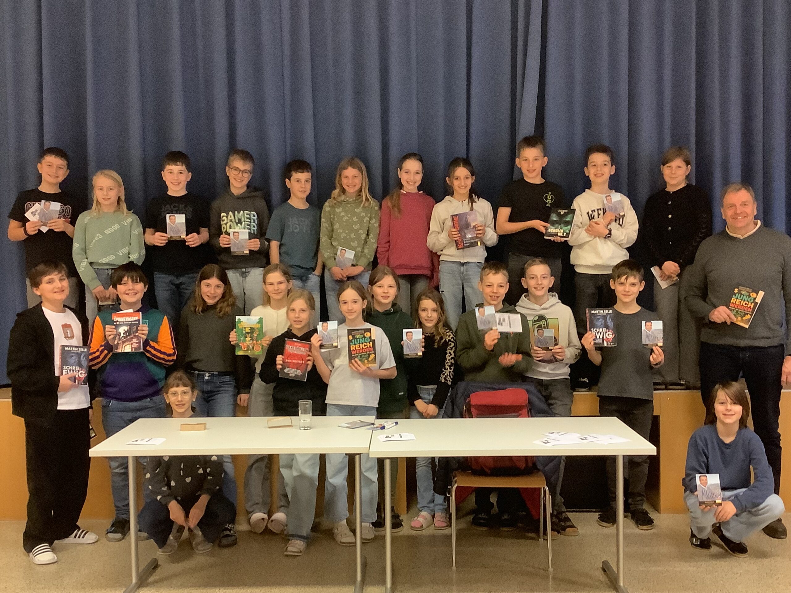 Durch eine spannende Lesung aus dem IQ-Buch „Schrei ewig“ wurden die Leselust und Lesemotivation der Schüler und Schülerinnen der 1. und 2. Klassen angeregt. Für die jeweils schnellste richtige Antwort beim Krimi-Duell konnten insgesamt 3 SchülerInnen ein Buch des Autors gewinnen. Herzliche Gratulation den Gewinnern und DANKE an Martin Selle für die kurzweilige, gruselige Lesung!