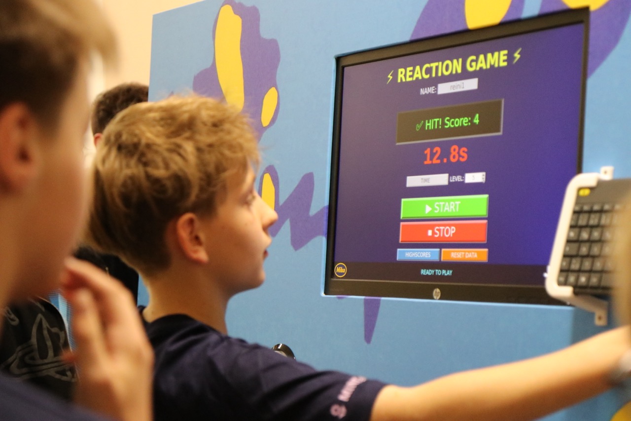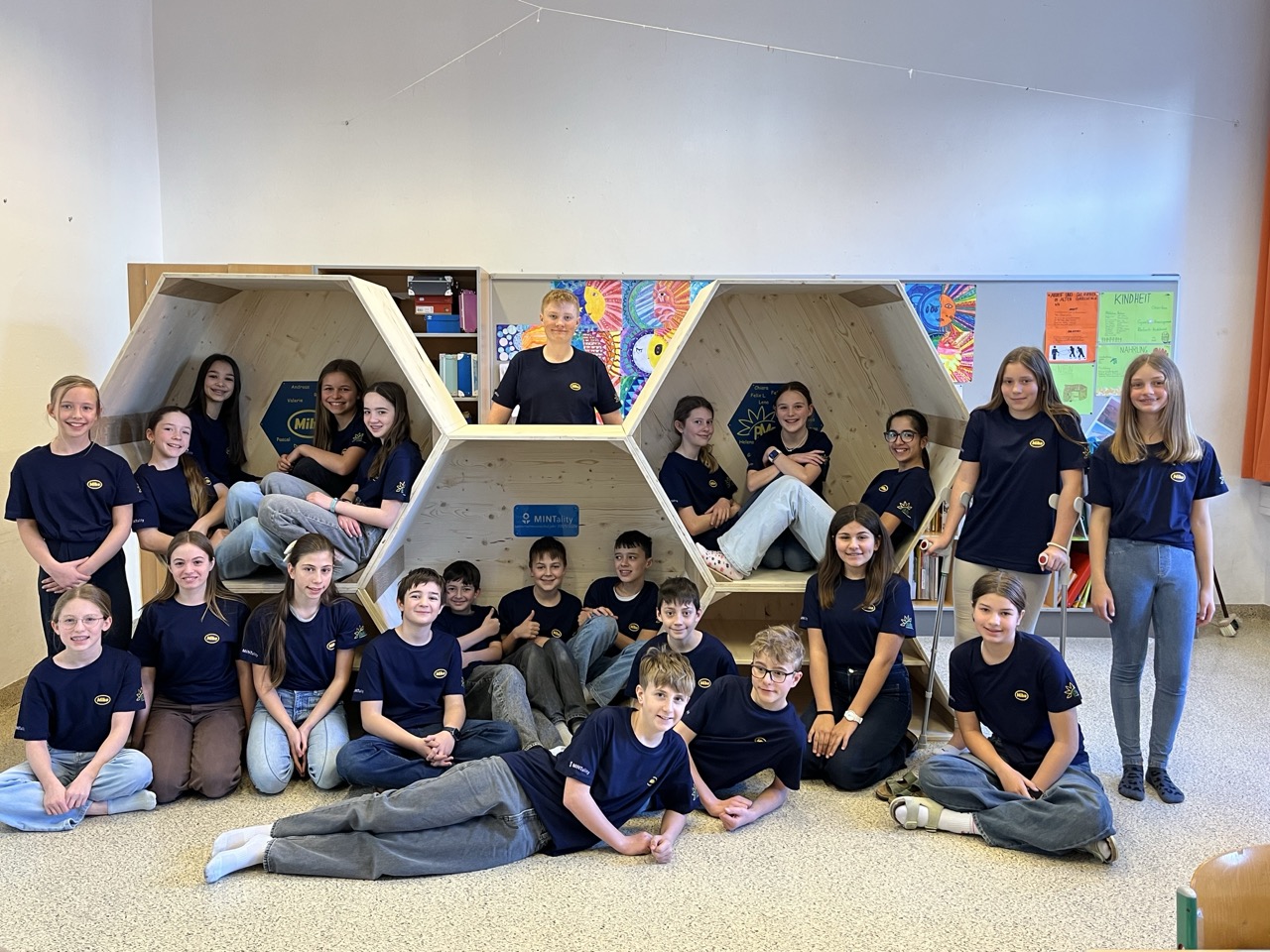 Im Zentrum standen zwei selbst entwickelte Produkte: die „Lernwabe“, ein vielseitiger Lern- und vor allem Aufenthaltsort, sowie die Reaktionswand („Buzzerwand“), die Geschicklichkeit und Schnelligkeit auf spielerische Weise trainiert.