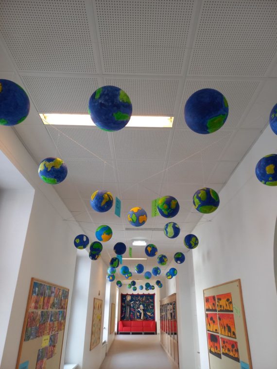 Die zahlreichen Aktivitäten zum Umweltschutz während der Fastenzeit haben die Klassen 2d und 3a dazu inspiriert, Weltkugeln zu gestalten.